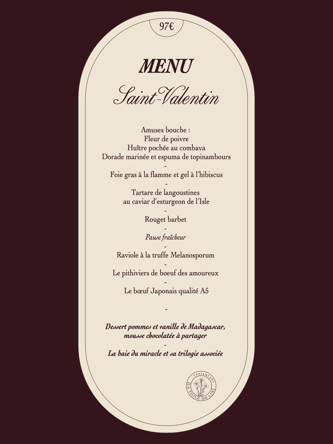 De l’huître pochée au combava au bœuf japonais A5, en passant par la raviole à la truffe melanosporum et le Pithiviers de bœuf des amoureux, chaque plat a été pensé pour être partagé… et savouré à deux 🍽️💫💑